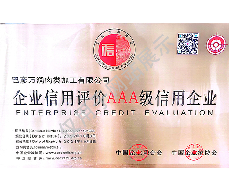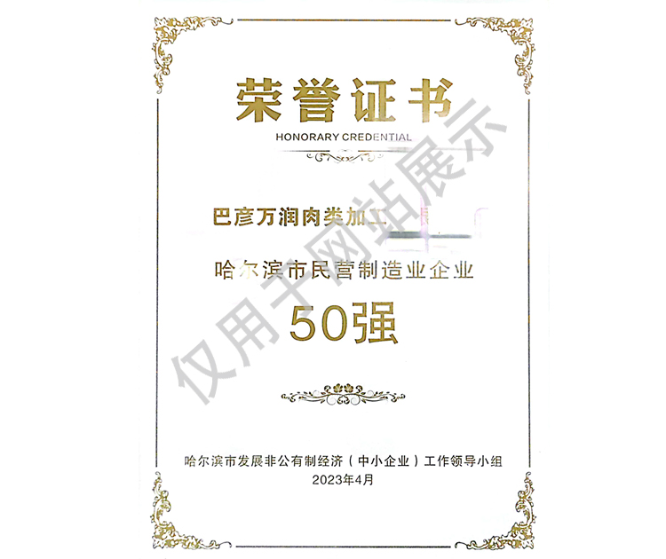 2016年(nian)公司(si)通(tong)過了中(zhong)(zhong)國(guo)(guo)質(zhi)(zhi)量認(ren)證中(zhong)(zhong)心的質(zhi)(zhi)量管(guan)理(li)體系(xi)(ISO9001)和食(shi)品(pin)(pin)安全管(guan)理(li)體系(xi)(ISO22000)認(ren)證;2017年(nian)已取得國(guo)(guo)家(jia)進出口企(qi)業(ye)(ye)(ye)認(ren)證;是中(zhong)(zhong)國(guo)(guo)肉類協(xie)會(hui)會(hui)員單位,黑(hei)龍江省(sheng)肉類協(xie)會(hui)副會(hui)長單位;2017年(nian),公司(si)產(chan)品(pin)(pin)經中(zhong)(zhong)國(guo)(guo)綠(lv)色(se)食(shi)品(pin)(pin)發展(zhan)中(zhong)(zhong)心審核,被(bei)認(ren)定(ding)為綠(lv)色(se)食(shi)品(pin)(pin)A級(ji)產(chan)品(pin)(pin);被(bei)省(sheng)畜牧獸醫局確定(ding)為全國(guo)(guo)生豬屠宰標準(zhun)化(hua)創建示(shi)范企(qi)業(ye)(ye)(ye)(全國(guo)(guo)僅6家(jia))。2018年(nian)12月(yue),被(bei)評定(ding)為市級(ji)農業(ye)(ye)(ye)產(chan)業(ye)(ye)(ye)化(hua)重點龍頭(tou)企(qi)業(ye)(ye)(ye)。2019年(nian)1月(yue),被(bei)評定(ding)為省(sheng)級(ji)農業(ye)(ye)(ye)產(chan)業(ye)(ye)(ye)化(hua)龍頭(tou)企(qi)業(ye)(ye)(ye)。