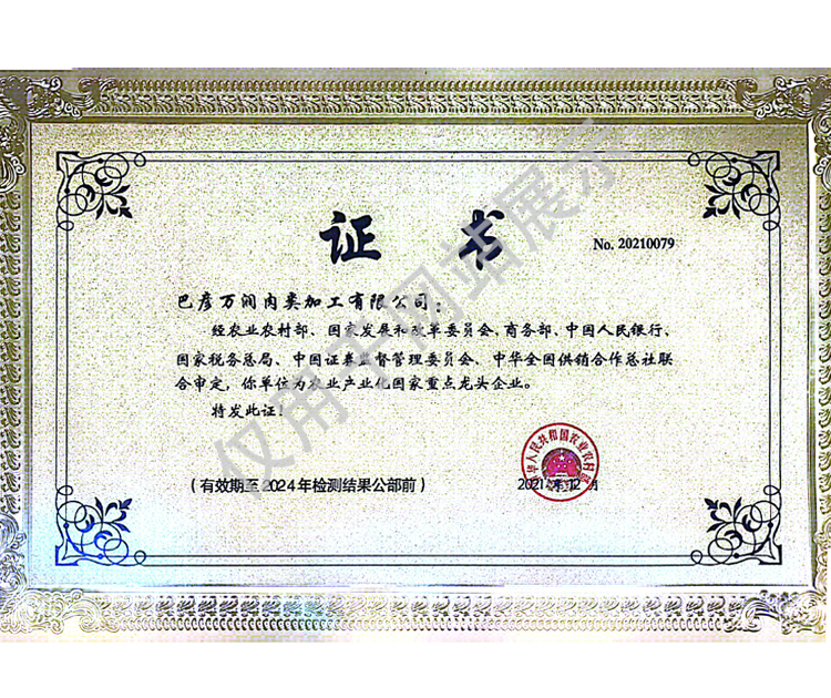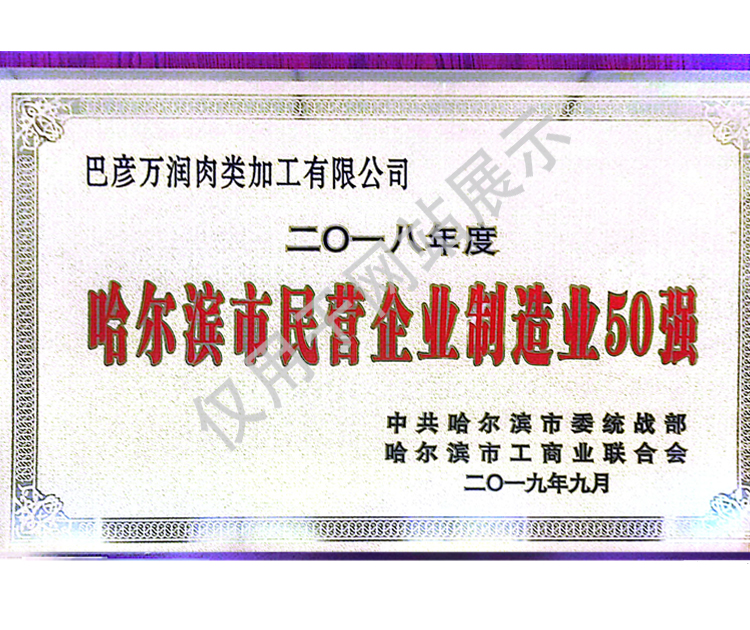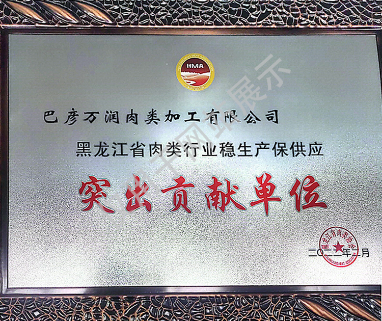 2016年(nian)(nian)公司通過(guo)了(le)中國(guo)質(zhi)量認證中心的質(zhi)量管理(li)體系(ISO9001)和(he)食品(pin)(pin)安全管理(li)體系(ISO22000)認證;2017年(nian)(nian)已取(qu)得國(guo)家(jia)進出口企(qi)業認證;是中國(guo)肉類(lei)協會(hui)會(hui)員單(dan)位(wei)(wei),黑(hei)龍江省肉類(lei)協會(hui)副會(hui)長(chang)單(dan)位(wei)(wei);2017年(nian)(nian),公司產品(pin)(pin)經(jing)中國(guo)綠色食品(pin)(pin)發(fa)展中心審(shen)核,被認定為綠色食品(pin)(pin)A級產品(pin)(pin);被省畜牧(mu)獸醫局確(que)定為全國(guo)生豬屠宰標準化(hua)創建示范(fan)企(qi)業(全國(guo)僅6家(jia))。2018年(nian)(nian)12月,被評定為市級農業產業化(hua)重點龍頭(tou)企(qi)業。2019年(nian)(nian)1月,被評定為省級農業產業化(hua)龍頭(tou)企(qi)業。