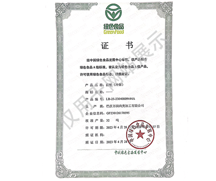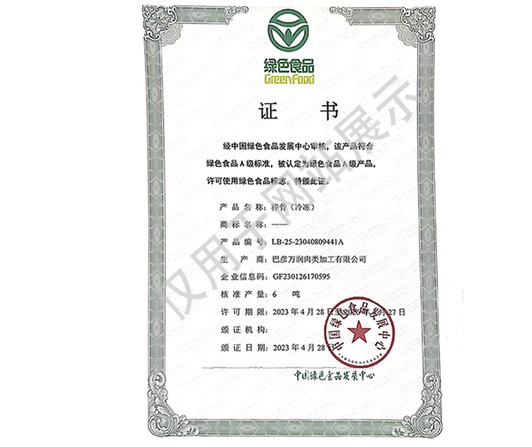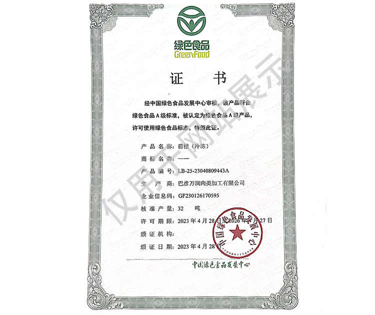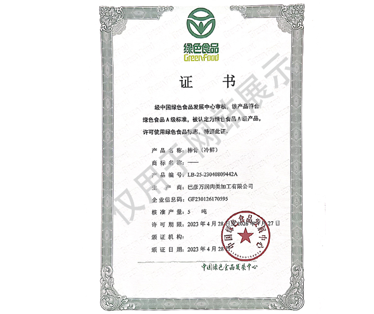 2016年(nian)公司(si)通過了中(zhong)(zhong)國質(zhi)量認(ren)證(zheng)中(zhong)(zhong)心(xin)的質(zhi)量管理體(ti)系(ISO9001)和食品(pin)安全(quan)管理體(ti)系(ISO22000)認(ren)證(zheng);2017年(nian)已取得國家(jia)進出(chu)口(kou)企(qi)(qi)業(ye)(ye)認(ren)證(zheng);是中(zhong)(zhong)國肉類協會(hui)會(hui)員單位,黑(hei)龍(long)江省肉類協會(hui)副(fu)會(hui)長單位;2017年(nian),公司(si)產品(pin)經中(zhong)(zhong)國綠色(se)食品(pin)發展中(zhong)(zhong)心(xin)審核,被認(ren)定為(wei)(wei)綠色(se)食品(pin)A級產品(pin);被省畜(chu)牧獸醫局確定為(wei)(wei)全(quan)國生(sheng)豬屠宰標準化(hua)(hua)創建示(shi)范企(qi)(qi)業(ye)(ye)(全(quan)國僅6家(jia))。2018年(nian)12月,被評定為(wei)(wei)市級農業(ye)(ye)產業(ye)(ye)化(hua)(hua)重點(dian)龍(long)頭企(qi)(qi)業(ye)(ye)。2019年(nian)1月,被評定為(wei)(wei)省級農業(ye)(ye)產業(ye)(ye)化(hua)(hua)龍(long)頭企(qi)(qi)業(ye)(ye)。