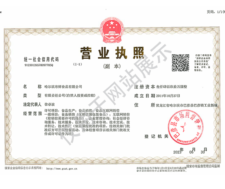 哈爾(er)濱(bin)寒鮮食品有(you)限(xian)公司在不久的(de)將來將以嶄新的(de)模(mo)式走(zou)向全(quan)國各(ge)地(di),讓更多人享受巴彥(yan)萬潤,讓更多人知道寒鮮食品。
