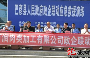 2018年(nian)6月13日上午,由巴(ba)彥(yan)縣(xian)(xian)(xian)政(zheng)府(fu)主辦(ban)、巴(ba)彥(yan)縣(xian)(xian)(xian)安(an)(an)全生產監(jian)督管理局(ju)(ju)與巴(ba)彥(yan)萬潤肉類加工有限公司承辦(ban)的火災事(shi)故政(zheng)企聯(lian)動應急救援演(yan)練在(zai)巴(ba)彥(yan)萬潤肉類加工有限公司廠(chang)區(qu)內舉行(xing)。巴(ba)彥(yan)縣(xian)(xian)(xian)政(zheng)府(fu)副縣(xian)(xian)(xian)長(chang)(chang)、縣(xian)(xian)(xian)公安(an)(an)局(ju)(ju)局(ju)(ju)長(chang)(chang)、演(yan)練總指(zhi)揮(hui)劉(liu)暢,巴(ba)彥(yan)縣(xian)(xian)(xian)安(an)(an)監(jian)局(ju)(ju)局(ju)(ju)長(chang)(chang)、演(yan)練副總指(zhi)揮(hui)馮華及安(an)(an)監(jian)局(ju)(ju)、公安(an)(an)局(ju)(ju)、環保(bao)局(ju)(ju)、衛計局(ju)(ju)、市場局(ju)(ju)、消防大(da)(da)隊(dui)、交警大(da)(da)隊(dui)、萬潤肉類公司等(deng)重點企業的負責人參加了大(da)(da)會。哈爾濱市安(an)(an)監(jian)局(ju)(ju)應急救援與事(shi)故處(chu)陳德(de)洪等(deng)同(tong)志也親臨會議(yi)進(jin)行(xing)指(zhi)導(dao)。